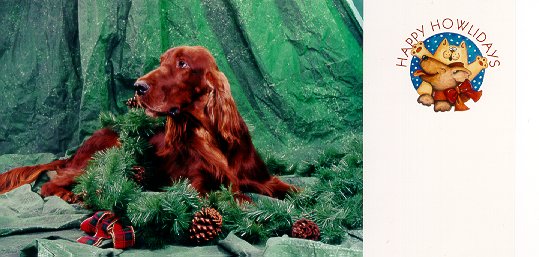 This is our Mom. With from left to right, Ruby, Rocky, Big Red, Brandy and Patrick. The shirt says, I Love My Rescue Red, sure should say, Reds! That is the lady who helps us all out from NJ!