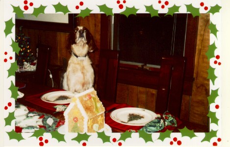 Casey - 2004 - Sitting patiently at the dinner table for his piece of the doggie gingerbread house!