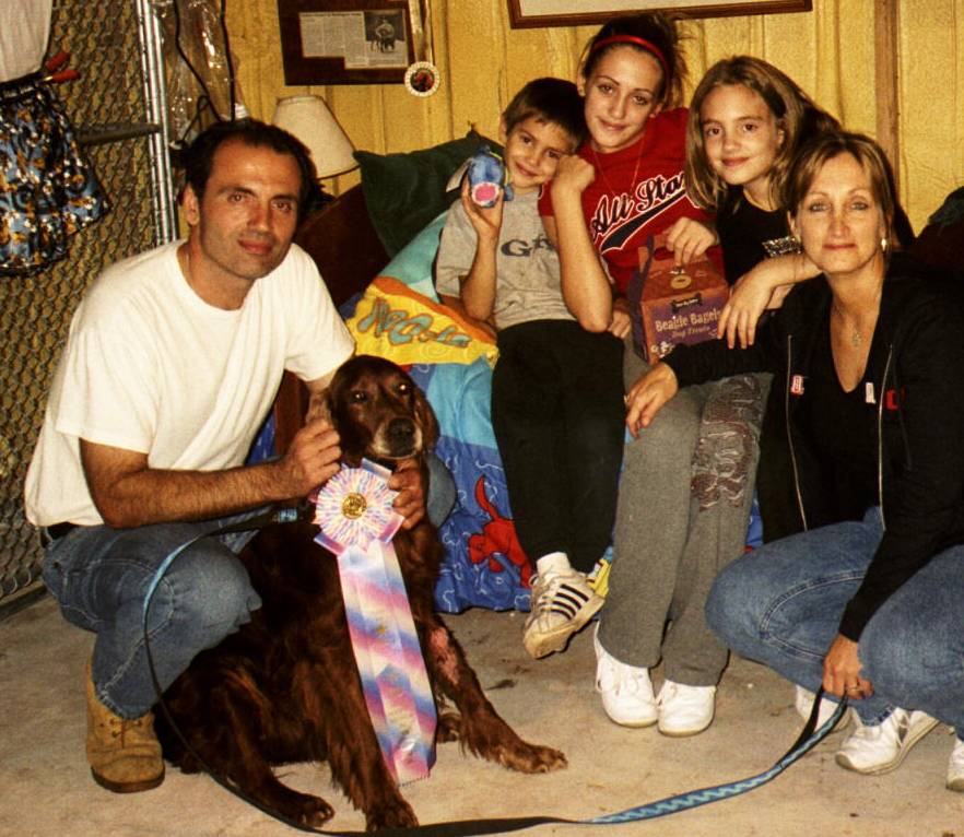 Buddy, fostered by us in NJ in Oct. 2002, our first heartworm positive Irish. He was treated and this wonderful family from Long Island, came to visit us. They were looking for a female Irish and Buddy won their hearts. He is living the good life now in NY!!!