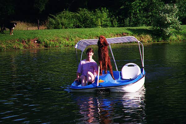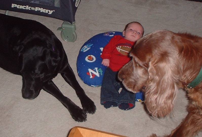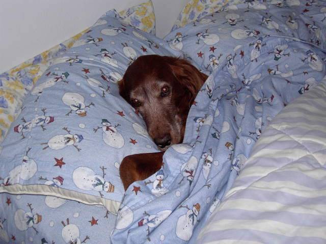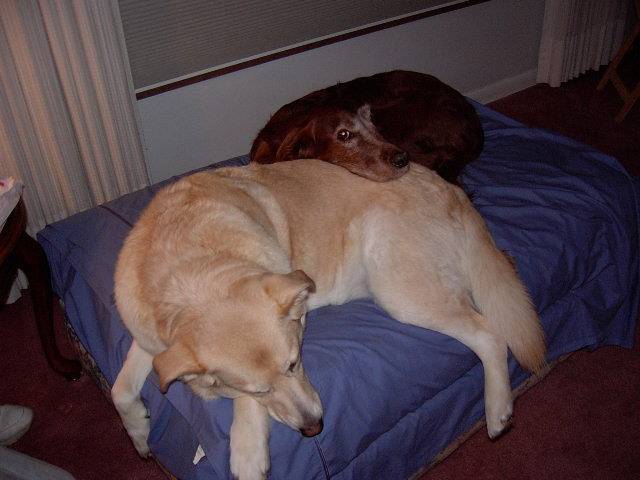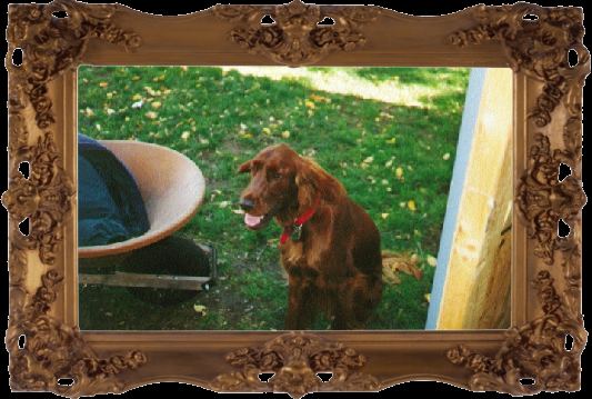 Ok, Duncan is a Golden, he just thinks he is an Irish, since he was fostered with six of them in 2002, update here as of 1/03.