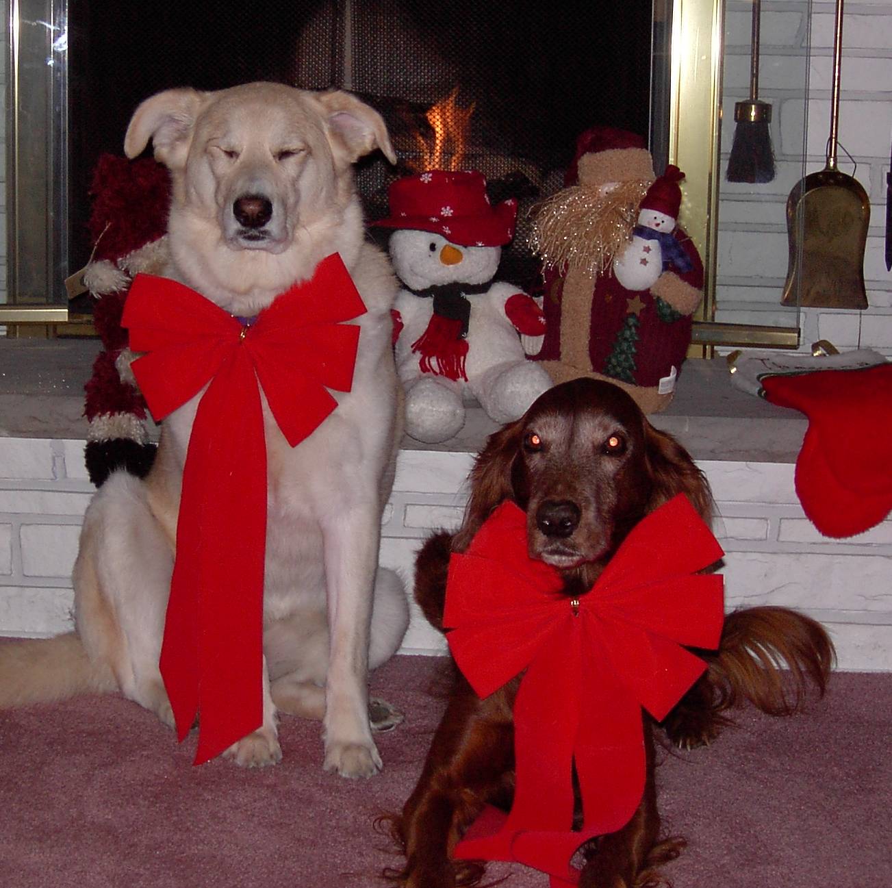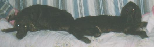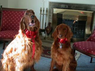 Here is a picture of Shamus and Sheila in front of the fireplace with their heart garlands on. Enjoy. Shamus will be 8 years old in May. Has shown in Novice, has his CGC degree and TDI. Will be working soon at nursing homes in the West Chester area. Both dogs attend the Chester County Dog Training Club. I am a member of the club. Sheila will be 2 in May. Rescued her at 6 months of age. Would not even come into the house at first, chewed decorated pillows, dug holes outside. Now, Shamus's best buddy, never chews anything, no more outside holes and just got her CGC degree and is working on her CD in Novice. What a turn around. Lovable and gives many kisses. Even through her shyness, she never showed any aggression towards man or beast.