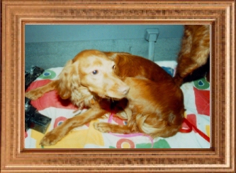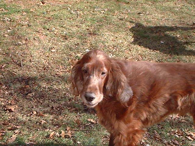 My name is Celtic Brandy. I was turned in by my previous owners due to complaints that I barked. I lived with my foster parents in PA for one year. I love to chase butterflies, for those of you on Setters-L, I am the mice chasing Irish. I found my loving permanent home in CT.