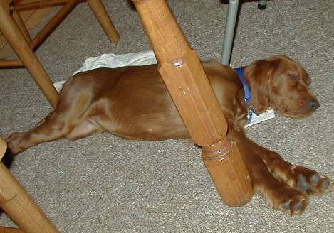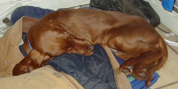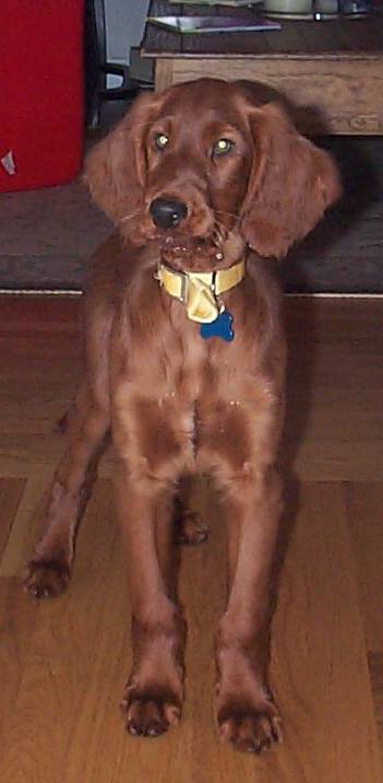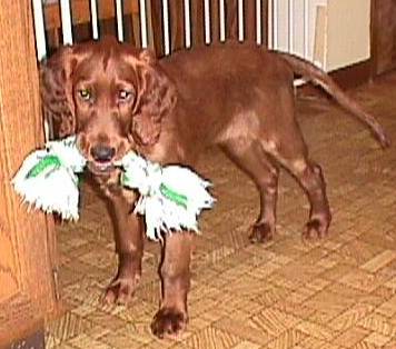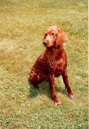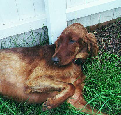 Hi! I am Stella. I was rescued by Irish Setter rescue and brought from PA and to NJ at about midnight one night, when I was only a few months old. My previous owner called Irish Setter rescue and they came right away. I only weighed 20 lbs. I was purchased in a pet store, but the lady just couldn't keep me. She had two other dogs and no yard. I now live in NJ and turned one year old in November 1999.