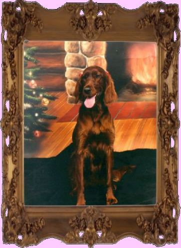 Hi! I am Ruby. I was rescued by Irish Setter in NJ in May 1999. My first family found me, but they couldn't keep me with three children. I now live with Shadow in Howell, NJ and I have a huge fenced in back yard. My favorite thing to do is chase squirrels, but usually I am standing on my two back legs and running! No one has been able to get a picture of me, but it sure is fun to play with Shadow and have a nice yard to run in. Photo sent in by Ruby's new Mom and Dad at Christmas, what a sweetheart!