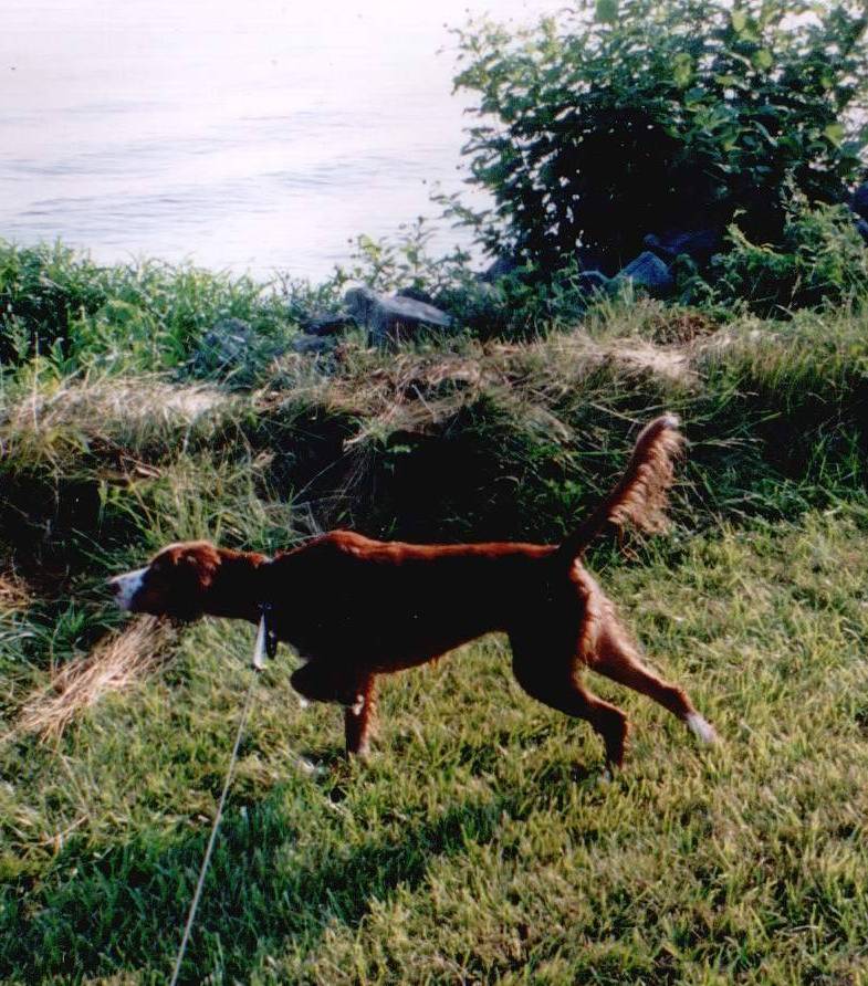 Baxter, not an Irish, an English Setter is now happy and living in PA. He was fostered in NJ by us, for months, searching for that perfect home. Purchased from a pet store and turned into rescue at only 6 months of age. Adopted Dec. 2002.
