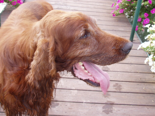 Our dearest Tbone has crossed the bridge, 8/17/04, he has left us much too soon. Mr. Bones came to us in NJ in November, 2003. He quickly won over our hearts and home. Since he was just a bag of bones, at 70 lbs., his name stuck! Now, March, 2004, after removing all the rocks and plaster that he had eaten and him gaining 20 lbs., he is now known as T-bone! He loves to chew on raw marrow bones. He is the love of our lives and has wiggled is way right into our hearts and home here in NJ!